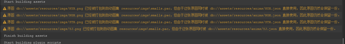 如图,web打包的时候提示自动图集会保留一份原图,这几张图跟其他图不同的地方就是,这几张是spine导出的图集。这是不能嵌套图集的原因吗,有什么办法可以解决吗