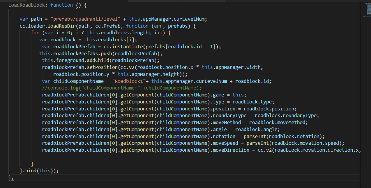 谢谢大佬的解答,的确描述得比较粗略,目前还没有挂在外网上,loadRoadblock函数是在游戏场景的onload,在开发过程和发布时选择调试模式都能正常运行,在正式发布模式下,在少部分些关卡中函数loadRoadblock中roadblockPrefab.children[0].getComponent(childComponentName)这步操作获取失败。再麻烦大佬看一下。