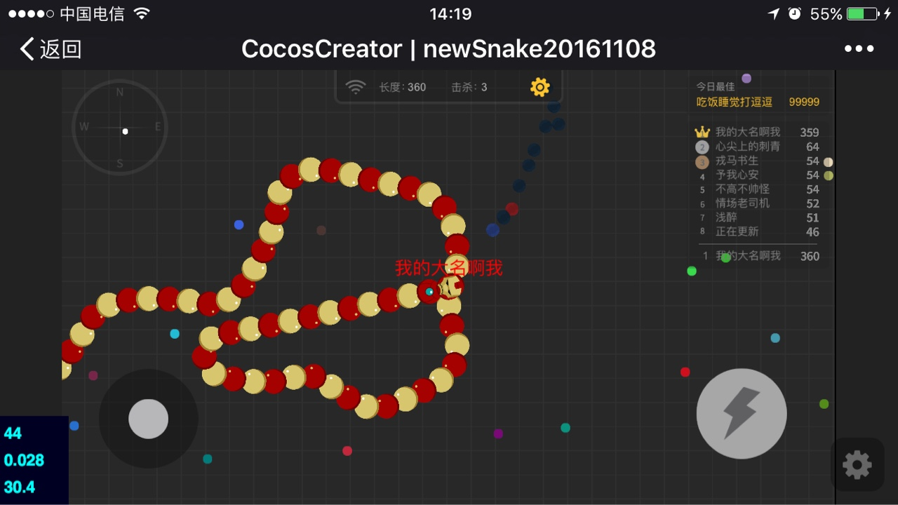 改成webGL 之前的那个很多个节点,解决了,在苹果上面自带的浏览器不掉帧,这微信 只能30帧左右,而且这蛇还才一点点长,你有更好的优化思路没呀,我的背景图是4940*2888的,我把这个改小也没啥效果