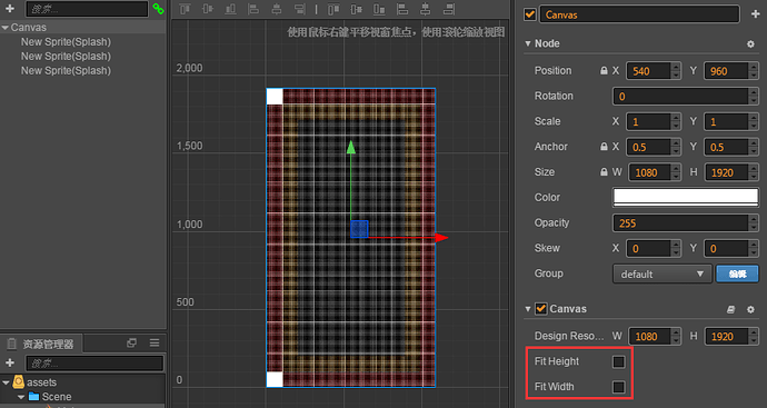 图一:编辑器中,canvas适配2个都没有勾选,背景图片与设计分辨率相同(1080*1920)