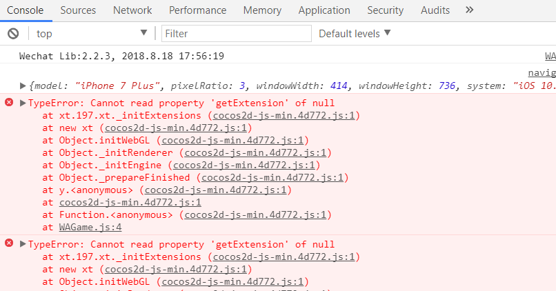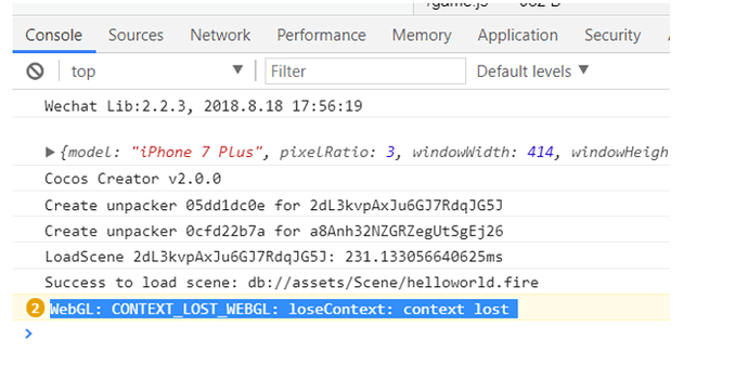 出现概率:100% 游戏发布到微信小游戏中编译正常,但更换模拟器类型后就提示webgl context lost,然后再编译就报错了没法运行。 更换时警告: