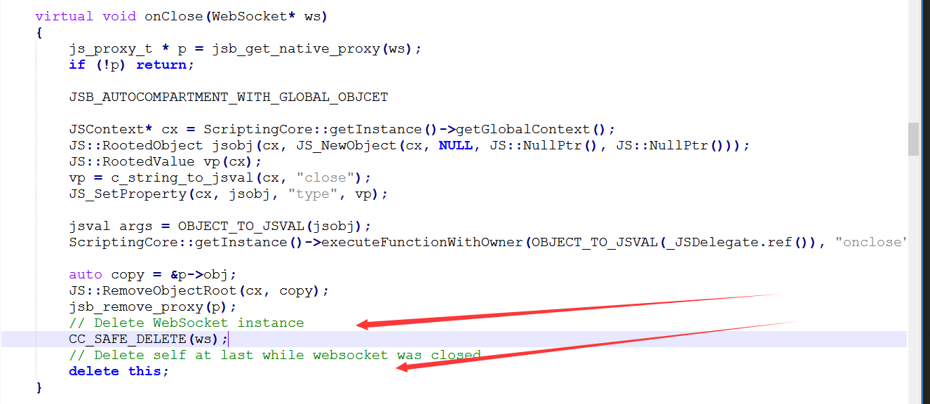 在cocosjs中使用websocket ,当苹果手机锁屏的时候,websocket会断开连接,当onclose的时候会被回收,当我再次使用websocket的时候会报Invalid Native Object 这个错误。我看了一下frameworks/cocos2d-x/cocos/scripting/js-bingings/manual/network/下的jsb代码。