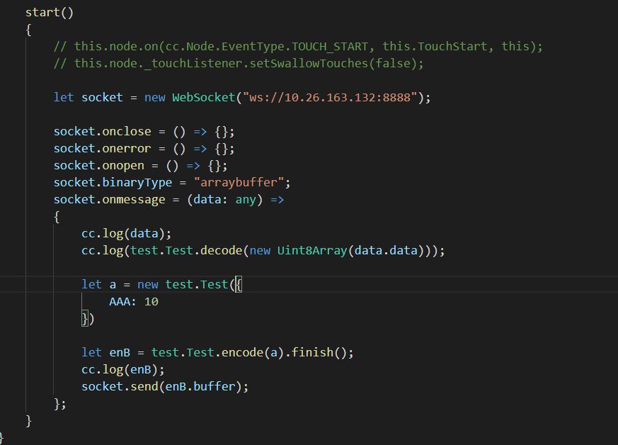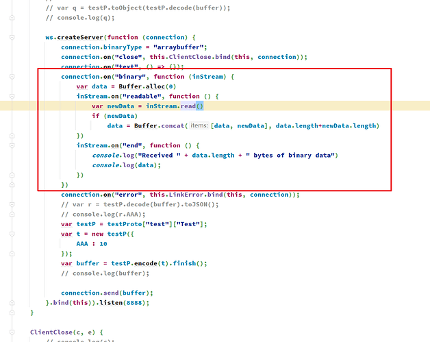 代码是这个样子的,但是NodeJs端接收不到数据,如果是字符串类型,就可以收到,大佬们帮忙看看是个什么我呢提