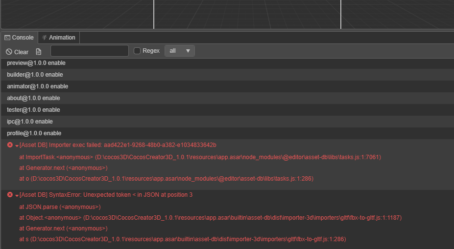 第二个报错的 uuid 可以在项目目录下全局搜索一下,可能能找到线索。另外,看上去像是 json 语法错误导致的导入失败