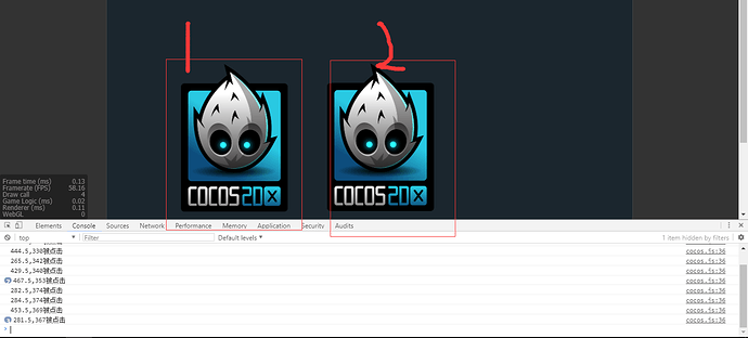 如图有两个一样的cocos节点,都设置了鼠标点击监听