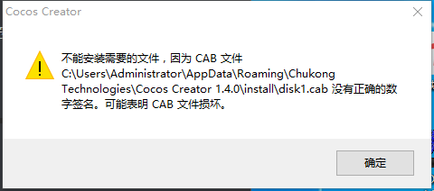 刚下载的CocosCreator_v1.4.0_2017021001_setup.exe,在自己win10机器安装的时候出现