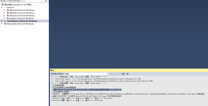 2>框架: Microsoft.VCLibs.140.00.Debug/x86,当前未安装应用程序包版本 14.0.24210.0。