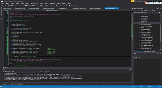 2>f:\testfun\testfun\classes\scene\videoplayerscene.h(21): error C2039: “VideoPlayer”: 不是“cocos2d::experimental”的成员 (…\Classes\AppDelegate.cpp)