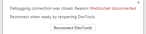 初步查明,是有由于insepctor不支持大的Websocket数据包造成的。chrome发过来一个很大的数据包,大概有13万个字节那么大(工程里面确实有大文件),发过来的是个json(,json中含有代码,并且json被分为多个包发送过来的)。