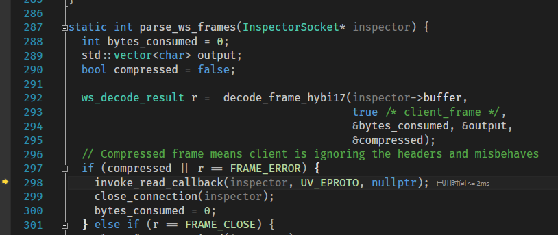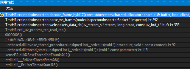 发现当打开project.js时,chrome发过来的WebSocket数据包,inspector解析出错导致的: