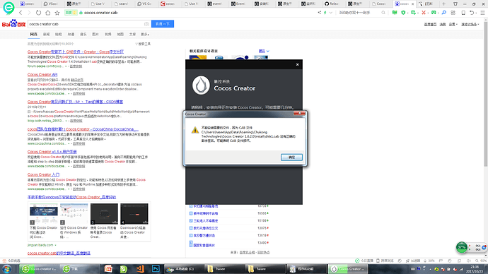 C:\Users\Administrator\AppData\Roaming\Chukong Technologies\Cocos Creator 1.4.0\intall\disk1.cab没有正确的数字签名。可能表明CAB文件损坏