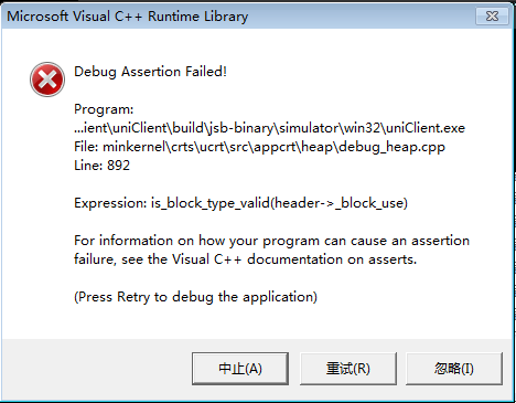 2)在自己的“build\jsb-binary\simulator\win32”下运行就报错。
