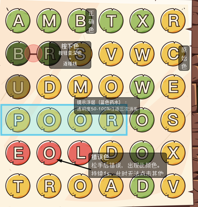 word search的游戏玩法就是手滑矩阵中的字母,然后手指抬起的时候判断这些字母是否是目标单词。