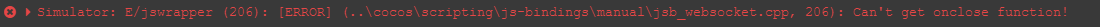 Simulator: E/jswrapper (206): [ERROR] (…\cocos\scripting\js-bindings\manual\jsb_websocket.cpp, 206): Can’t get onclose function!