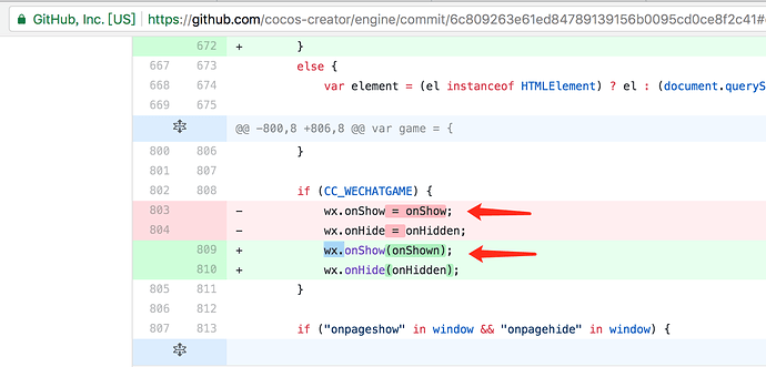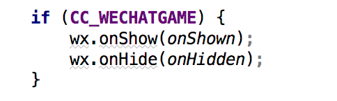 看了官方的引擎代码,要微信小游戏下,这样写是不是BUG.好像没有onShow这个方法。如下图: