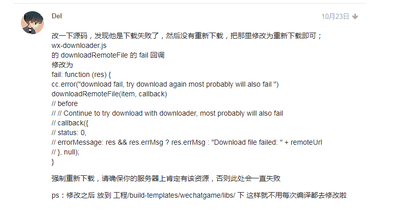 看了下WXDownloader的过程 就是用到某个资源 会先去包里找 没有再去缓存找 在没有就去远程服务器下载 现在的问题是 比如在下载过程中 因为网络不好 比如在地铁上突然没信号了 造成了下载失败 这种要怎么才能重试 或者 通过哪个地方能知道这个下载失败了