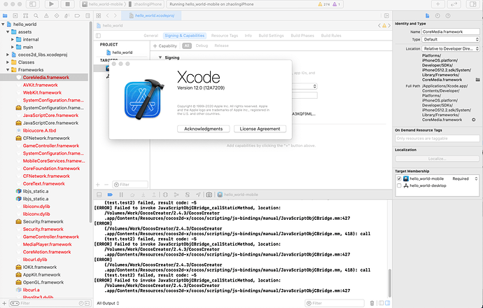 creator 2.4.3,2.4.2 。都不行,啥都没接,点开framework就一堆报红。xcode降版本后就可以