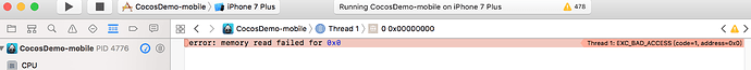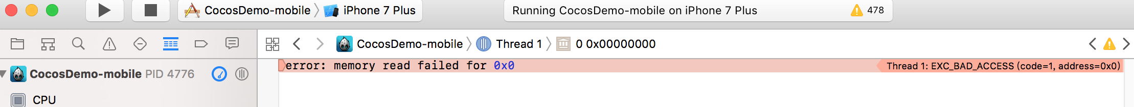 error: memory read failed for 0x0
